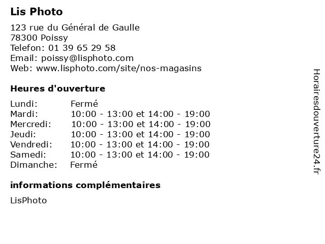 1 Lis Photo (Distance: 4,92 km) 46 rue au Pain, 78100 St Germain en Laye laboratoires, lis, photo, photographiques, révélé 2 Lis Photo (Distance: 18,37 km) 15 rue Henri Barbusse, 92300 Levallois-Perret laboratoires, lis, photo, photographiques, révélé 3 Lis Photo (Distance: 18,91 km) 16 rue de l'Annonciation, 75016 Paris laboratoires, lis, photo, photographiques, révélé 4 Photo Sphere (Distance: 0,06 km) 124-126 Rue Du General De Gaulle, 78300 Poissy accessoires mode, audiovisuel, hi-fi, loisirs, photo, sphere 5 Espace Photo By Auchan (Distance: 14,62 km) 15 Parvis de la Défense, 92092 Paris La Défense auchan, by, centre, commercial, defense, espace, la, les, paris, photo, temps 6 Espace Photo (Distance: 15,23 km) 4 rue Georges Clemenceau, 78000 Versailles espace, photo, photographe, services |