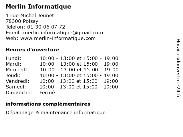 | Mercredi | 10:00-13:00 et 15:00-19:00 |