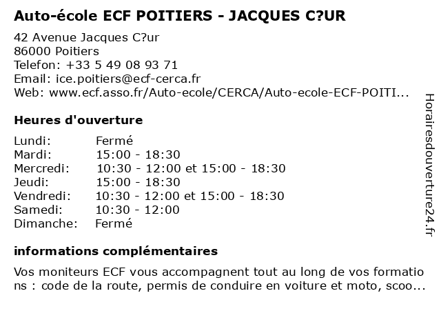 Termes de recherche pour Auto-école ECF POITIERS - JACQUES C?UR:poitiers, auto, jacques, ecole, ecf, c?ur |