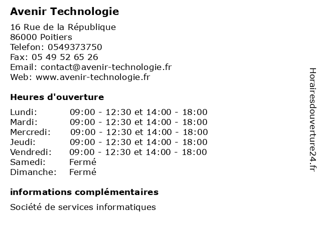 Lundi | 09:00-12:30 et 14:00-18:00 |