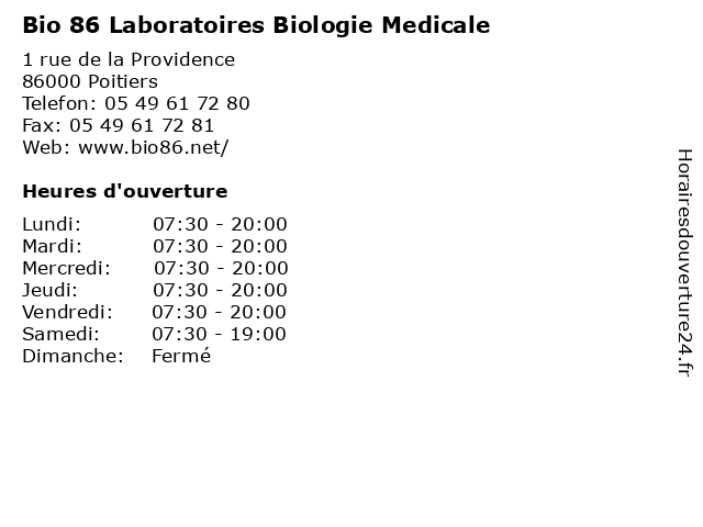 1 Bio 86 Laboratoires Biologie Medicale (Distance: 0,81 km) 74 route de Gençay, 86000 Poitiers 86, bio, biologie, laboratoire, laboratoires, medicale, medicales, services 2 Bio 86 Laboratoires Biologie Medicale (Distance: 2,93 km) 40 rue de la Marne, 86000 Poitiers 86, bio, biologie, laboratoire, laboratoires, medicale, medicales, services 3 ReVIH 86 -médico-psycho-sociale (Distance: 0,90 km) 2 rue de la milétrie, 86021 Poitiers 86, consultation, docteur, médico, psycho, revih, santé, sociale 4 Ferme Bio 86 (Distance: 2,67 km) 20 Bis Route du Margouillet, 86550 Mignaloux-Beauvoir 86, bio, ferme, fruits, légumes, mignaloux-beauvoir, producteurs 5 Le Club 86 (Distance: 3,19 km) 138 Route Des Colombiers, 86550 Mignaloux-Beauvoir 86, club, d'ouverture, du, ecole, heures, le, squash, équipes 6 Ital auto 86 (entretien/reparation) (Distance: 4,38 km) s/n Rue Bessie Coleman, 86000 Poitiers 86, auto, automobile, entretien/reparation, ital, service |