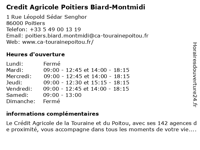 Termes de recherche pour Credit Agricole Poitiers Biard-Montmidi:poitiers, agricole, crédit, biard, montmidi |