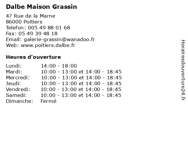 | Samedi | 10:00-13:00 et 14:00-18:45 |