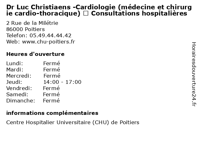 Termes de recherche pour Dr Luc Christiaens -Cardiologie (médecine et chirurgie cardio-thoracique) – Consultations hospitalières:et, luc, medecine, santé, chirurgie, docteur, dr., cardio, médecins, dr, consultations, cardiologie, hospitalières, thoracique, christiaens |