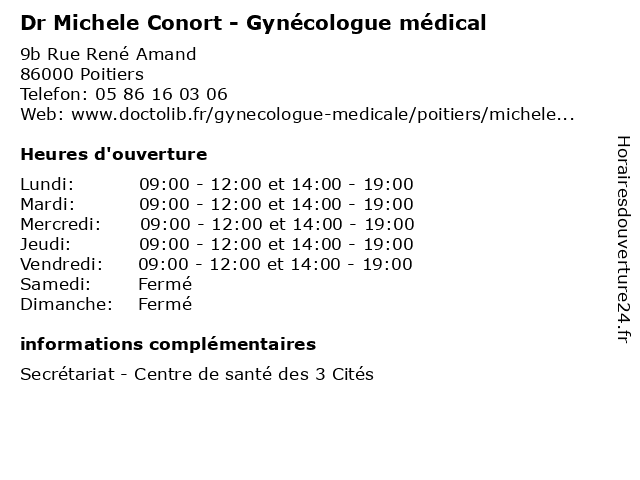| Mercredi | 09:00-12:00 et 14:00-19:00 |