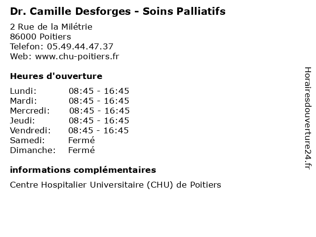 1 Dr. Laure Percheron Vendeuvre - Soins Palliatifs (Distance: 0,00 km) 2 Rue de la Milétrie, 86000 Poitiers docteur, dr., laure, medecins, palliatifs, percheron, sante, soins, vendeuvre 2 Dr Laurent Montaz - Soins Palliatifs (Distance: 0,00 km) 2 Rue de la Milétrie, 86000 Poitiers docteur, dr, dr., laurent, medecins, montaz, palliatifs, sante, soins 3 Dr. Camille Quirier Leleu - Hépato-Gastro-Entérologie et Assistance Nutritive (Distance: 0,00 km) 2 Rue de la Milétrie, 86000 Poitiers assistance, camille, docteur, dr., entérologie, et, gastro, hépato, leleu, medecins, nutritive, quirier, sante 4 Dr. Camille Laraufie - ORL-Chirurgie maxillo-faciale et audiophonologie (Distance: 0,00 km) 2 Rue de la Milétrie, 86000 Poitiers audiophonologie, camille, chirurgie, docteur, dr., et, faciale, laraufie, maxillo, medecins, orl, sante 5 Les Jardins de Camille - Maison de Retraite (EPHAD) (Distance: 0,96 km) 26 rue du Pré-Médard, 86280 Saint-Benoît camille, de, dependant, ehpad, ephad, jardins, les, maison, prive, retraite, salle de kiné, semi-valide, valide 6 Olivier Desforges (Distance: 3,55 km) 9 Rue de Magenta, 86000 Poitiers accessoires, couette, desforges, linge, mode, olivier |