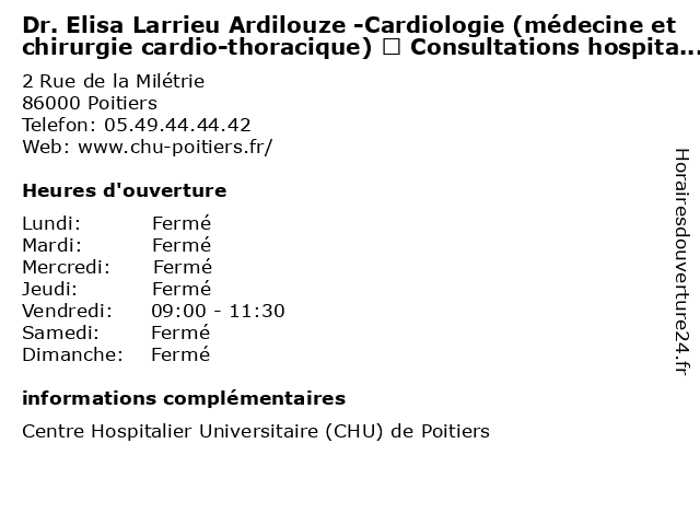 Termes de recherche pour Dr. Elisa Larrieu Ardilouze -Cardiologie (médecine et chirurgie cardio-thoracique) – Consultations hospitalières:et, medecine, santé, elisa, chirurgie, docteur, dr., cardio, médecins, consultations, larrieu, cardiologie, hospitalières, thoracique, ardilouze |