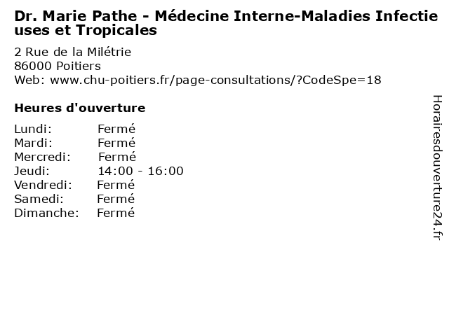 Termes de recherche pour Dr. Marie Pathe - Médecine Interne-Maladies Infectieuses et Tropicales:et, marie, medecine, santé, pathé, interne, docteur, dr., médecins, maladies, infectieuses, tropicales |