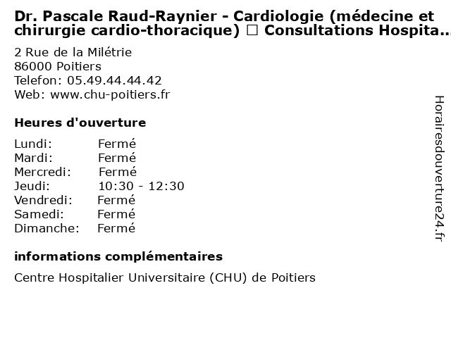 Termes de recherche pour Dr. Pascale Raud-Raynier - Cardiologie (médecine et chirurgie cardio-thoracique) – Consultations Hospitalières:et, medecine, santé, pascale, chirurgie, docteur, dr., cardio, médecins, consultations, cardiologie, hospitalières, thoracique, raud, raynier |