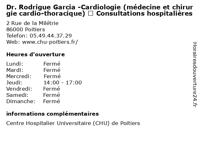 Termes de recherche pour Dr. Rodrigue Garcia -Cardiologie (médecine et chirurgie cardio-thoracique) – Consultations hospitalières:et, medecine, santé, garcia, chirurgie, docteur, dr., cardio, médecins, consultations, cardiologie, rodrigue, hospitalières, thoracique, garcie |