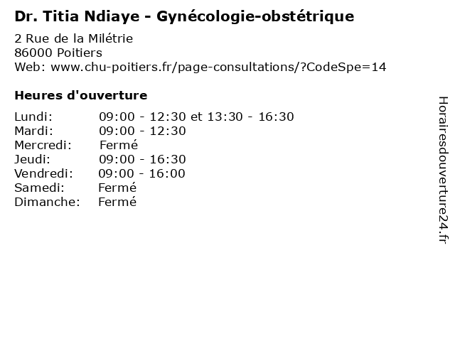 | Lundi | 09:00-12:30 et 13:30-16:30 |
