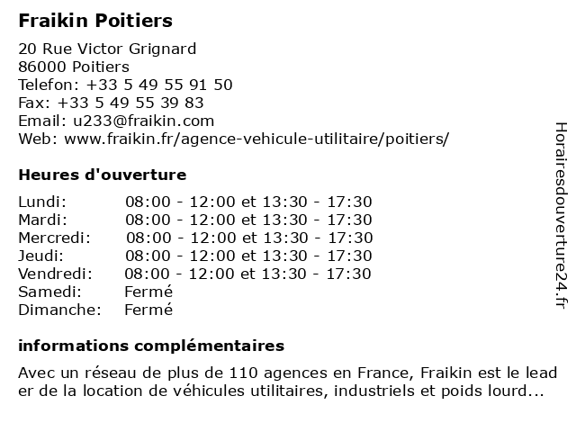 1 Fraikin Niort (Distance: 59,20 km)3 Rue Jules Dumont d'Urville, 79260 La Crèche fraikin, niort