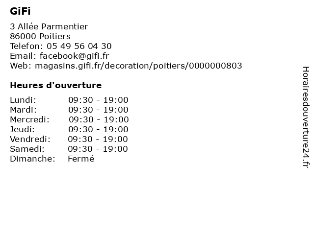 1 GiFi Loc (Distance: 6,31 km) - Rue de la Saulaie, 86240 Croutelle agence, gifi, loc, location, services, utilitaires, véhicules 2 GiFi (Distance: 32,65 km) - ZAC d'Argenson, 86100 Châtellerault bureau, cuisine, décoration, gifi, jardin & plein air, salle à manger, salon, stockage - salle 3 GiFi (Distance: 46,12 km) - ZAC des loges, 79200 Parthenay cuisines, decoration, entretien, gifi, jardin, linge de maison, mobillier 4 GiFi (Distance: 47,01 km) - Des Loges, 79200 Parthenay bureau, cuisine, décoration, gifi, jardin & plein air, salle à manger, salon, stockage - salle 5 GiFi (Distance: 48,48 km) - Avenue du Président Wilson, 79400 Saint-Maixent-l'École bureau, cuisine, décoration, gifi, jouets, salon, stockage, vaisselle 6 SFR Poitiers Beaulieu (Distance: 0,17 km) C Cial Geant Beaulieu, 86000 Poitiers beaulieu, compagnie de téléphone, magasin de téléphones mobiles, poitiers, sfr, vente et installation du câble et du satellite |