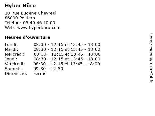 | Mardi | 08:30-12:15 et 13:45-18:00 |