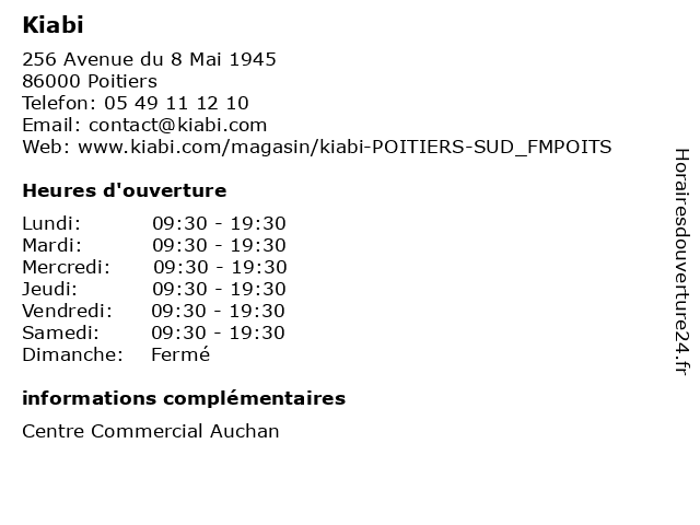 1 Kiabi (Distance: 12,26 km) 22 Rue du Commerce, 86360 Chasseneuil du Poitou baby, costumes, house, kiabi, kids, lingerie, men, shoes, women 2 OKAIDI POITIERS PORTE SUD (Distance: 0,29 km) 245 Avenue du 8 Mai 1945, 86000 Poitiers bébé garçon, chapeau bébé fille, chaussure bébé fille, chaussures fille, chaussures garçon, collant fille, dors bien, manteau bébé fille, manteau bébé garçon, manteau fille, manteau garçon, okaidi, poitiers, porte, pull fille, pyjama naissance, robe bébé, robe fille, sandale bébé garçon, sud, tenue cérémonie garçon, vêtement bébé fille, vêtements fille, vêtements garçon 3 San Marina (Distance: 4,71 km) 72 Rue Gambetta, 86000 Poitiers accessoires, chaussure, chaussures, femmes, hommes, italienne, marina, marque, mode, san 4 Babou (Distance: 7,21 km) 26 Rue de la Loge, 86440 Migne Auxances babou, chaussure, enfant, homme, mode femme 5 CHAUSSEXPO (Distance: 36,63 km) Rue Pierre Pleignard, 86100 Châtellerault baskets, bottes, bottines, chaussexpo, chaussons, chaussure bébé, chaussure enfant, chaussure femme, chaussure homme, chaussure travail, derbies 6 Kiabi (Distance: 36,73 km) 6 rue de la Désirée, 86100 Châtellerault accessoires, chaussure, kiabi, mode, vêtements |