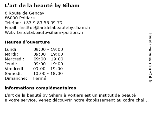 | Lundi | 09:00-19:00 |