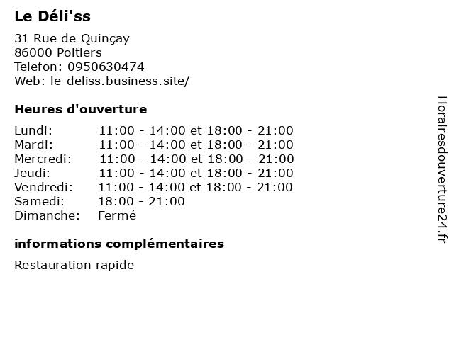 | Lundi | 11:00-14:00 et 18:00-21:00 |