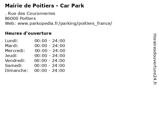 1 Mairie de Poitiers - Car Park (Distance: 0,66 km) . Rue du Jardin des Plantes, 86000 Poitiers automobile, car, de, mairie, park, parking, poitiers, services 2 Mairie de Poitiers - Car Park (Distance: 0,68 km) . Rue Grignon de Montfort, 86000 Poitiers automobile, car, de, mairie, park, parking, poitiers, services 3 Mairie de Poitiers - Car Park (Distance: 0,68 km) . Rue de l'Intendant Le Nain, 86000 Poitiers automobile, car, de, mairie, park, parking, poitiers, services 4 Mairie de Poitiers - Car Park (Distance: 0,68 km) . Rue de l'Intendant Le Nain, 86000 Poitiers automobile, car, de, mairie, park, parking, poitiers, services 5 Mairie de Poitiers - Car Park (Distance: 0,93 km) . Boulevard du Grand Cerf, 86000 Poitiers automobile, car, de, mairie, park, parking, poitiers, services 6 Mairie de Poitiers - Car Park (Distance: 1,03 km) . Voie André Malraux, 86000 Poitiers automobile, car, de, mairie, park, parking, poitiers, services |