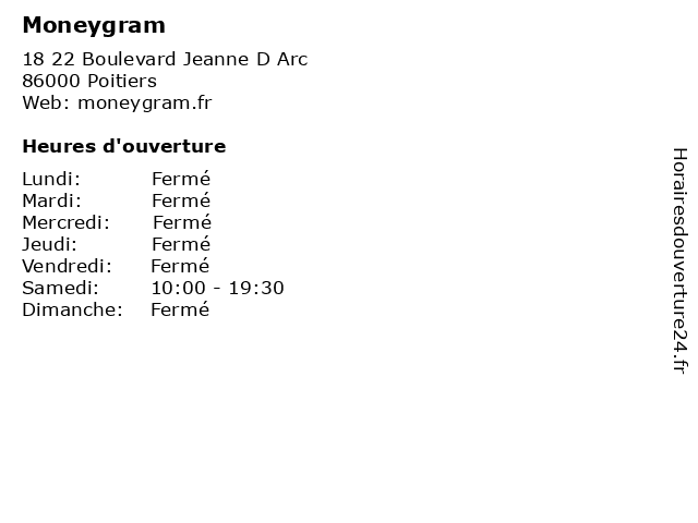 1 Moneygram (Distance: 1,14 km) 33 rue carnot, 86000 Poitiers centre de remmittance, l'argent, moneygram, transfert d'argent 2 Moneygram (Distance: 3,41 km) 25 place philippe le bel, 86000 Poitiers centre de remmittance, l'argent, moneygram, transfert d'argent 3 Western Union (Distance: 0,16 km) 115 Place Des Trois Cites, 86000 Poitiers centre de remmittance, l'argent, transfert d'argent, union, western 4 Western Union (Distance: 0,19 km) 6 Place Des Trois Cites, 86000 Poitiers centre de remmittance, l'argent, transfert d'argent, union, western 5 Western Union (Distance: 0,55 km) 21 B Rue De L Universite, 86000 Poitiers centre de remmittance, l'argent, transfert d'argent, union, western 6 Western Union (Distance: 0,57 km) 3 B Rue De L Universite, 86000 Poitiers centre de remmittance, l'argent, transfert d'argent, union, western |