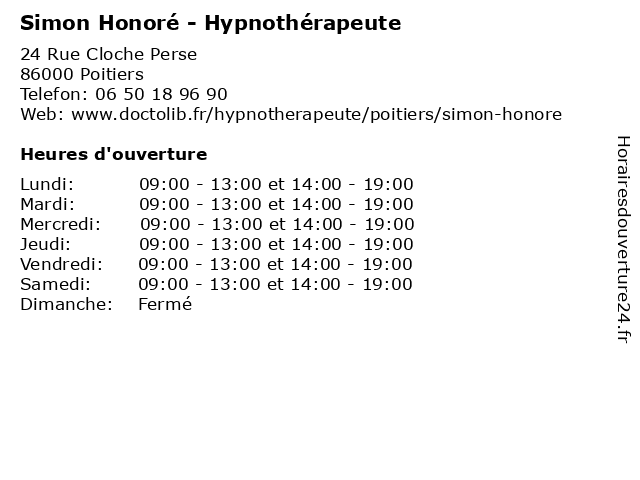 | Lundi | 09:00-13:00 et 14:00-19:00 |