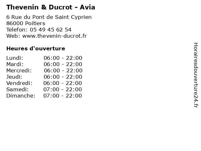1 Thevenin & Ducrot - Avia (Distance: 1,52 km) 225 Rue du Faubourg du Pont Neuf, 86000 Poitiers accessoires, avia, ducrot, motos, services, stations, thevenin, voitures 2 Thevenin & Ducrot - Avia (Distance: 1,95 km) 75 Avenue John Kennedy, 86000 Poitiers accessoires, avia, ducrot, motos, services, stations, thevenin, voitures 3 Thevenin & Ducrot - Avia (Distance: 12,04 km) - de Jaunay, 86130 Jaunay-Clan accessoires, avia, ducrot, motos, services, stations, thevenin, voitures 4 Thevenin & Ducrot - Avia (Distance: 12,30 km) - de Poitiers-Chincé, 86130 Jaunay-Clan accessoires, avia, ducrot, motos, services, stations, thevenin, voitures 5 Thevenin & Ducrot - Avia (Distance: 17,85 km) - Vieilles, 86370 Vivonne accessoires, avia, ducrot, motos, services, stations, thevenin, voitures 6 Thevenin & Ducrot - Avia (libre service 24/24) (Distance: 0,00 km) 6 Rue du Pont de Saint Cyprien, 86000 Poitiers 24/24, accessoires, avia, ducrot, libre, motos, service, services, stations, thevenin, voitures |