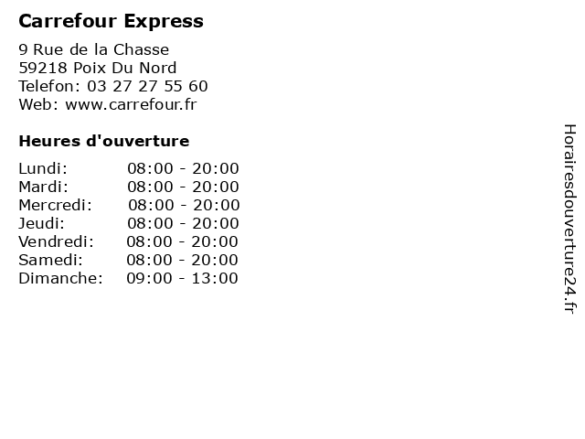 1 Carrefour Express (Distance: 15,69 km) 11 Rue Gabriel Péri, 59198 Haspres alimentation, carrefour, express, magasin discount, market, supermarché 2 Carrefour Station Service (Distance: 4,31 km) - Rue de Landrecies, 59222 Bousies carburant, carrefour, essences, gazole, service, services, station 3 Carrefour Contact (Distance: 4,49 km) - Rue de Landrecies, 59222 Bousies alimentaire, alimentation, carrefour, contact, courses, distributeur, hypermarché, supermarché, épicerie 4 Esso Express (Distance: 7,21 km) 2 Place de la Gare, 59530 Le Quesnoy carburant, esso, express, services, station, véhicules 5 Carrefour Market (Distance: 8,26 km) 56 Rue de la République, 59730 Solesmes alimentaire, alimentation, carrefour, courses, distributeur, hypermarché, market, supermarché, épicerie 6 Carrefour Location (Distance: 8,42 km) 56 Rue De La Republique, 59730 Solesmes agence, carrefour, location, utilitaires, véhicules |