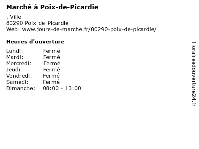 1 Marché de Grandvilliers (Distance: 8,20 km) . Place Barbier, 60210 Grandvilliers alimentaire, de, fleur, grandvilliers, habillement, marché, services 2 Marché à Conty (Distance: 14,58 km) . Ville, 80160 Conty conty, frutas, hortalizas, marché, mercado, verduras 3 Marché de Formerie (Distance: 15,40 km) . Rue de Ville, 60220 Formerie alimentaire, de, fleur, formerie, habillement, marché, services 4 Marché de Crèvecœur-le-Grand (Distance: 16,57 km) . Hôtel-de-Ville, 60360 Crèvecœur-le-Grand alimentaire, crèvecœur, de, fleur, grand, habillement, le, marché, services 5 Marché de la Halle aux herbes à Auch (Distance: 16,57 km) . Ville, 32000 Auch auch, aux, de, frutas, halle, herbes, hortalizas, la, marché, mercado, verduras 6 Marché à Longpré-les-Corps-Saints (Distance: 26,00 km) . Ville, 80510 Longpré-les-Corps-Saints corps, frutas, hortalizas, les, longpré, marché, mercado, saints, verduras |