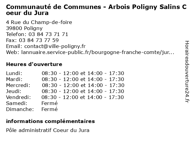 Termes de recherche pour Communauté de Communes - Arbois Poligny Salins Coeur du Jura:du, de, comte, salins, administration, services, communes, coeur, publics, communauté, jura, arbois, grimont, poligny |