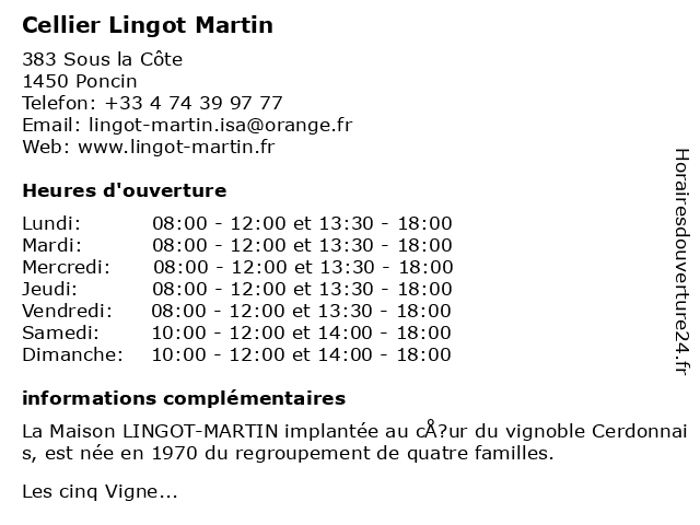 | Lundi | 08:00-12:00 et 13:30-18:00 |