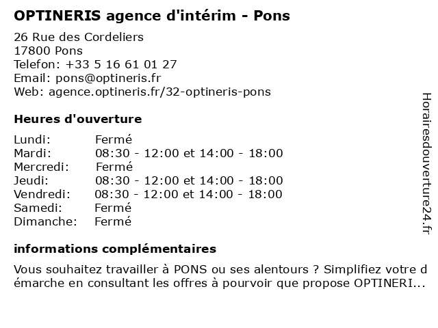 Termes de recherche pour OPTINERIS agence d'intérim - Pons:agence, pons, d'intérim, optineris |