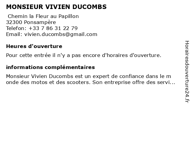 | Appeler MONSIEUR VIVIEN DUCOMBS | |
