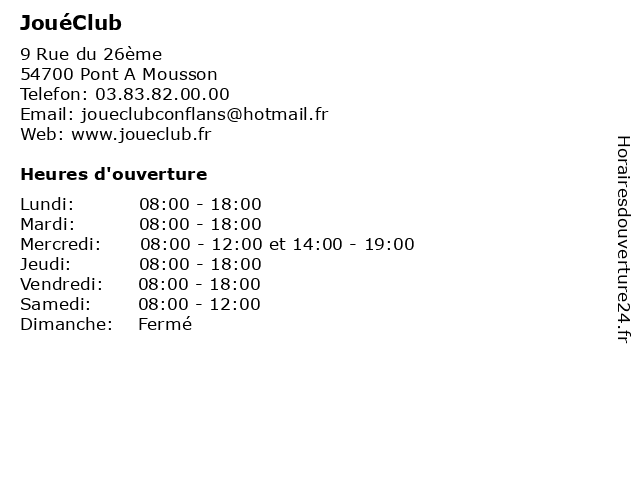 | Mercredi | 08:00-12:00 et 14:00-19:00 |