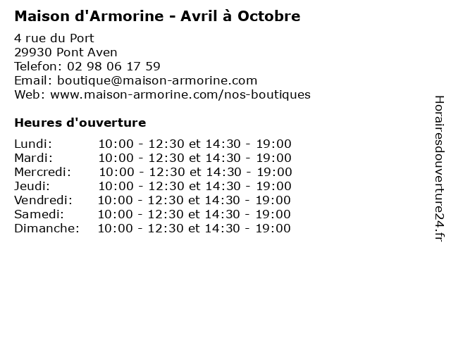| Samedi | 10:00-12:30 et 14:30-19:00 |