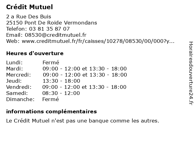 | Mardi | 09:00-12:00 et 13:30-18:00 |