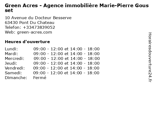 | Lundi | 09:00-12:00 et 14:00-18:00 |
