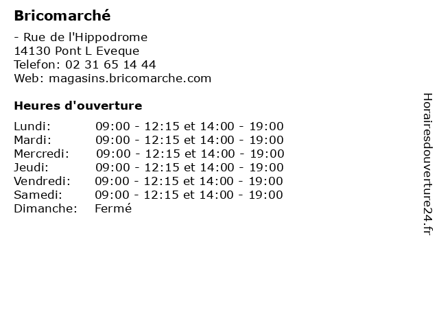 | Samedi | 09:00-12:15 et 14:00-19:00 |