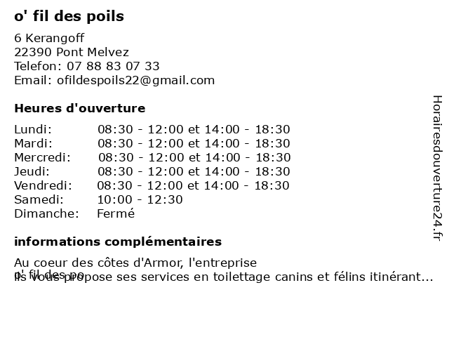 | Mardi | 08:30-12:00 et 14:00-18:30 |