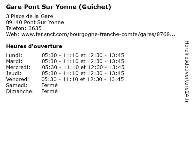 Termes de recherche pour Gare Pont Sur Yonne (Guichet):sur, yonne, pont, gare, services, station, guichet |