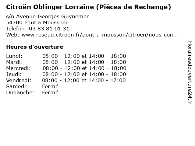 | Lundi | 08:00-12:00 et 14:00-18:00 |