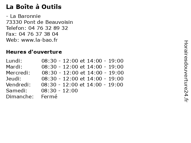 | Lundi | 08:30-12:00 et 14:00-19:00 |
