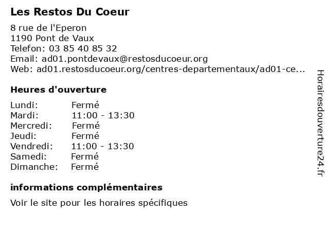 1 Coup De Coeur (Distance: 16,31 km) 18 Rue de l'Héritan, 71000 Macon accessoires, boutique, coeur, coup, de, femme, mode, vêtements 2 Secours Catholique (Distance: 0,01 km) 6 Rue de l’Eperon, 01190 Pont de Vaux associatif, association, bénévolat, bénévole, catholique, secours, solidaire, solidarité 3 Secours Catholique (Distance: 15,91 km) 8 Rue Bel Air, 71000 Macon associatif, association, bénévolat, bénévole, catholique, secours, solidaire, solidarité 4 Secours Catholique (Distance: 17,90 km) 10 Rue de l’Eglise, 01340 Montrevel en Bresse associatif, association, bénévolat, bénévole, catholique, secours, solidaire, solidarité 5 Les Restos Du Coeur - Entrepôt Départemental (Distance: 31,90 km) 25 Avenue Arsène d'Arsonval, 01000 Bourg-en-Bresse aides, alimentaire, coeur, du, départemental, entrepôt, les, restos, santé, solidarité, soutien 6 O2 Care Services (Distance: 34,43 km) 41 Avenue Amédée Mercier, 01000 Bourg-en-Bresse aide, care, garde d'enfants, jardinage, maison, nettoyage, o2, repassage, service, services, soins, soutien scolaire |