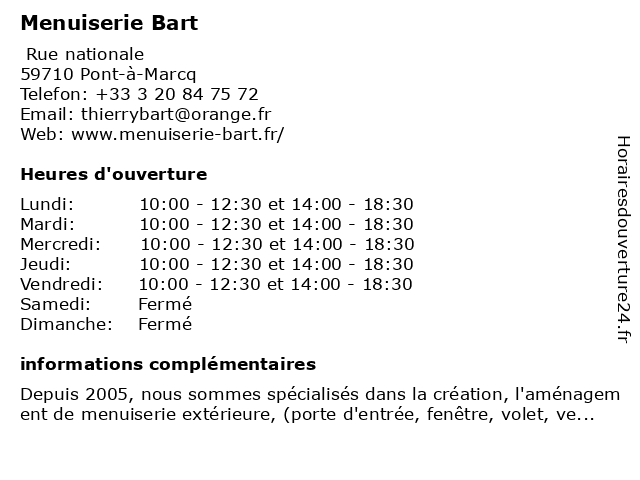 Lundi | 10:00-12:30 et 14:00-18:30 |