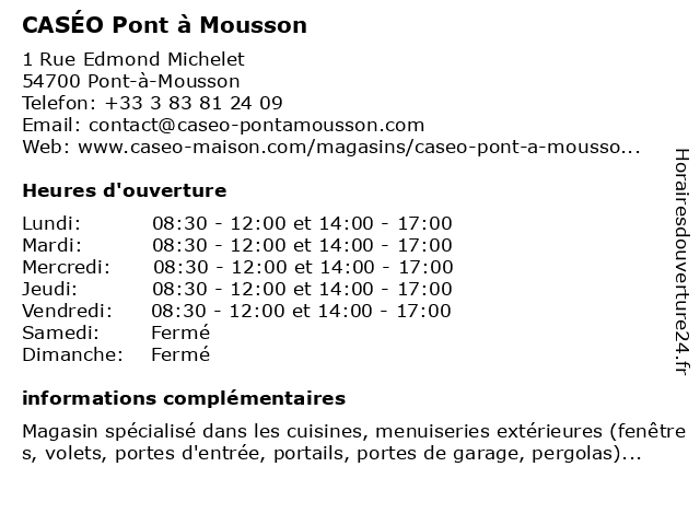 | Lundi | 08:30-12:00 et 14:00-17:00 |
