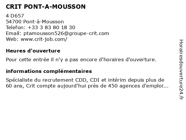 | Appeler CRIT PONT-A-MOUSSON | |