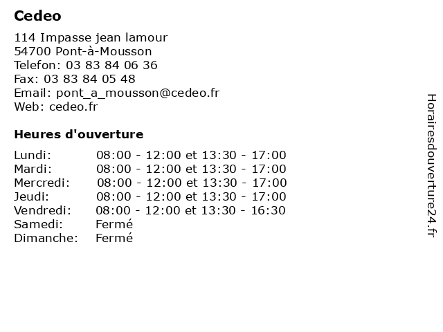 | Lundi | 08:00-12:00 et 13:30-17:00 |