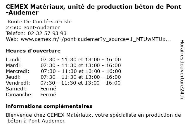 Termes de recherche pour CEMEX Matériaux, unité de production béton de Pont-Audemer:de, pont, unité, materiaux, audemer, beton, production, cemex, fournisseur de matériel pour le béton |
