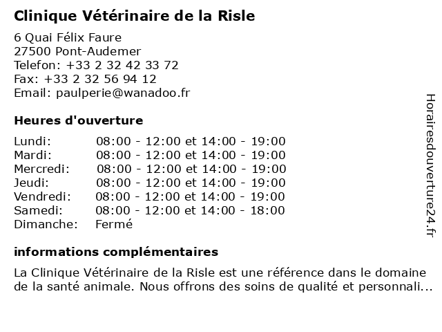 1 Clinique Vétérinaire de La Risle (Distance: 12,38 km) 95 Rue de la Libération, 27210 Beuzeville clinique, de, la, risle, vétérinaire 2 Risle Pizzas (Distance: 0,48 km) 93 Rue De La Republique, 27500 Pont Audemer morin, pizzas, restaurants, risle, tony 3 Aux Délices de la Risle (Distance: 0,57 km) 19 Rue Jean Jaurès, 27500 Pont-Audemer aux, brasserie, de, delices, délices, la, repas, restaurants, risle 4 Communauté de communes - Pont-Audemer Val de Risle (Distance: 0,62 km) 2 Place de Verdun, 27500 Pont-Audemer administration, audemer, communauté, communes, de, pont, risle, services publics, val 5 Office de Tourisme de Pont-Audemer et le Val de Risle (Distance: 0,64 km) 2 Place du Général-de-Gaulle, 27500 Pont-Audemer audemer, bureaux, de, et, le, office, pont, risle, services, tourisme, val 6 Auto Sécurité - Auto controle de la risle (Distance: 0,84 km) 17 Rue du Pré Baron, 27500 Pont-Audemer auto, controle, de, la, risle, sécurité |