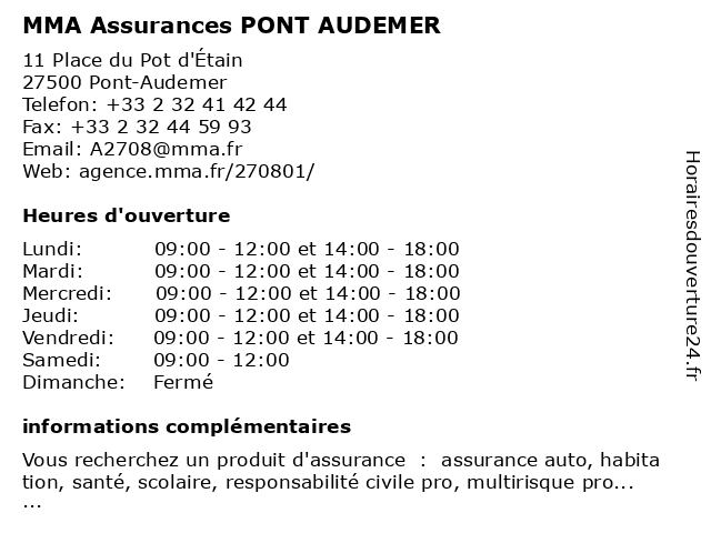 1 Matmut Assurances (Distance: 0,18 km) 5 Place Louis Gillain, 27500 Pont-Audemer agence d'assurance de biens, assurances, expert en sinistres, matmut, organisme d'assurance animaux de compagnie, organisme d'assurance auto, organisme d'assurance bateau, organisme d'assurance moto, organisme d'assurance-habitation, organisme d'assurance-vie, service d'assurance professionnelle 2 Gan Assurances (Distance: 0,38 km) 31 rue Sadi Carnot, 27500 Pont Audemer agence, assurances, courtier, gan, protection, sinistres 3 Abeille Assurances (Distance: 0,41 km) 8 Rue des Carmes, 27503 Pont-Audemer abeille, assurance, assurance abeille, assurance auto, assurance-vie, assurances, habitation, santé 4 Abeille Assurances (Distance: 12,38 km) 63 A Rue de Verdun, 27210 Beuzeville abeille, assurance, assurance abeille, assurance auto, assurance-vie, assurances, habitation, santé 5 GAN ASSURANCES CORMEILLES (Distance: 15,25 km) 12 Rue de Pont Audemer, 27260 Cormeilles assurances, cormeilles, gan 6 Macif Assurances (Distance: 18,38 km) 12 Boulevard Maréchal de Lattre de Tassigny, 76170 Lillebonne assurance, assurances, macif, prévoyance, sante, services |