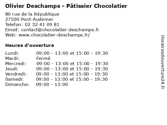 | Lundi | 09:00-13:00 et 15:00-19:30 |