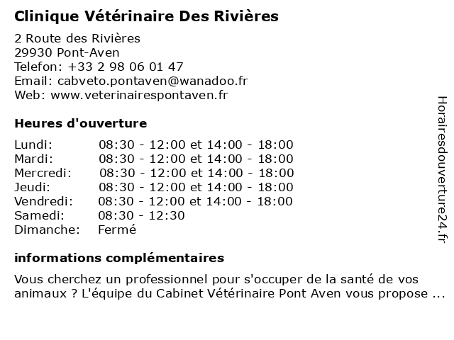 | Lundi | 08:30-12:00 et 14:00-18:00 |